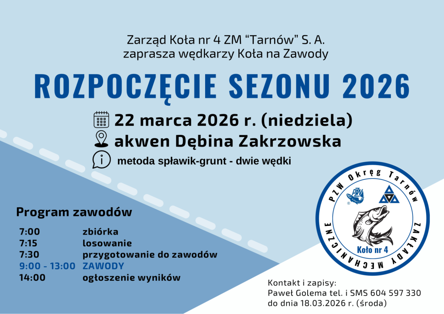 Spławikowe zawody „WIOSNA” 2026 r.